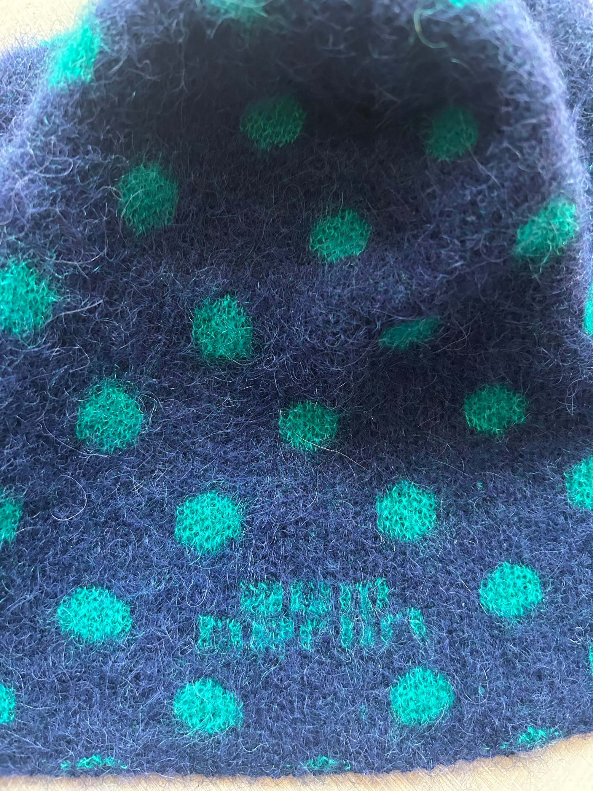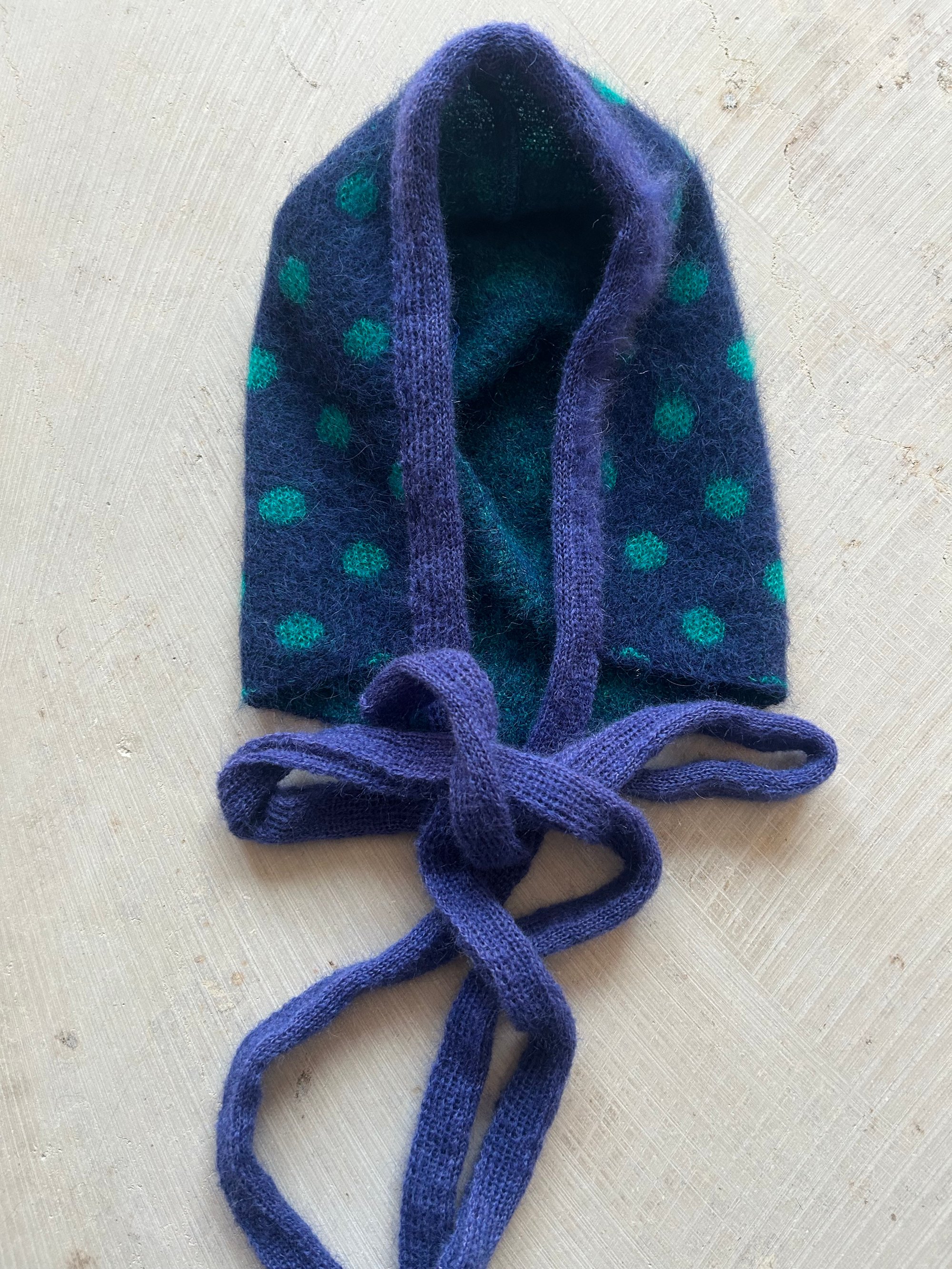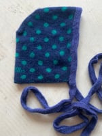 A soft bonnet made from brushed alpaca wool with a subtle polka dot pattern.