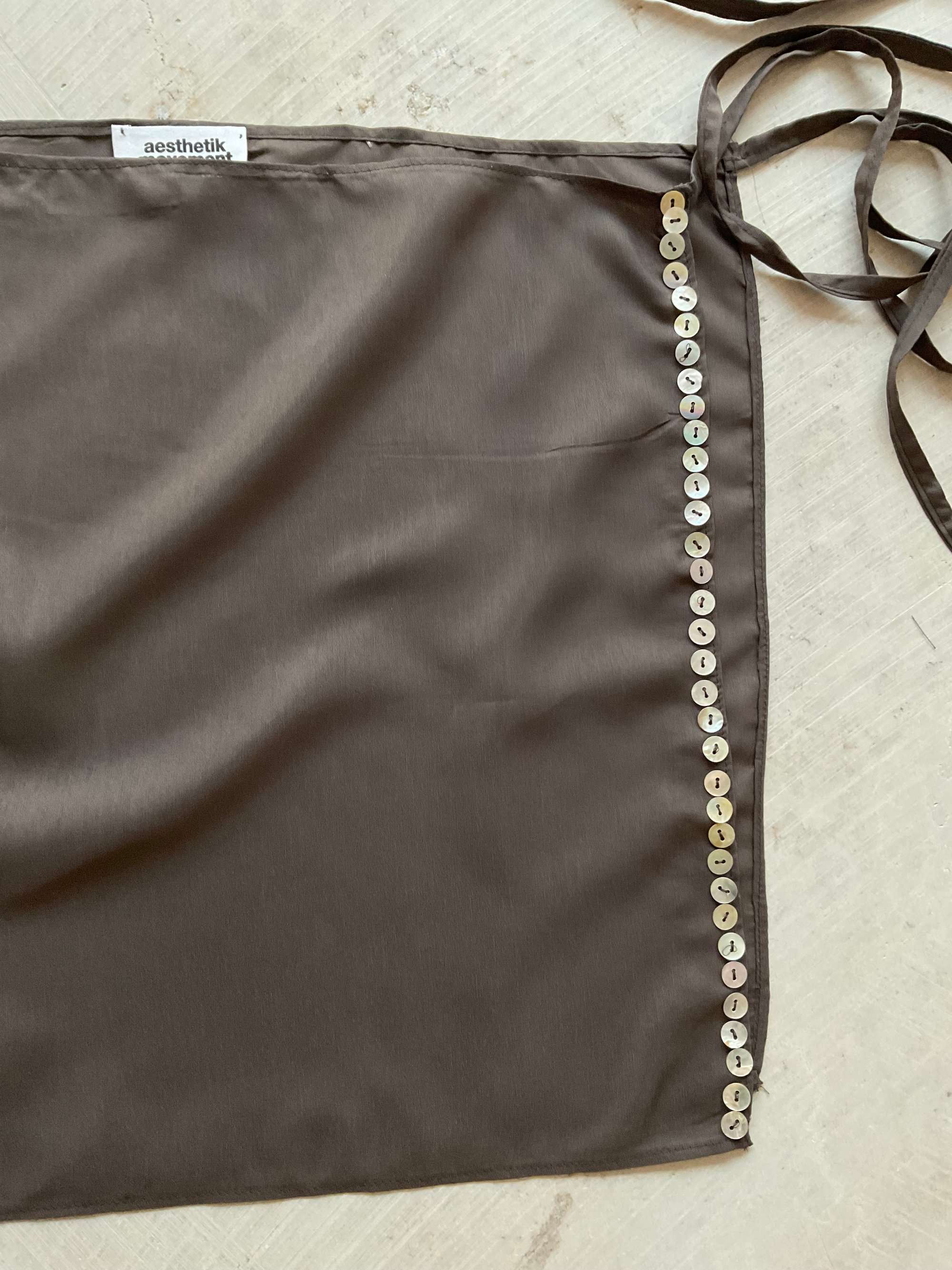 Cut from a soft viscose–polyester mix with a subtle sheen, this apron is designed as a versatile styling layer. Lightweight, fluid and easy to tie, it adds dimension to both tailored and casual looks.