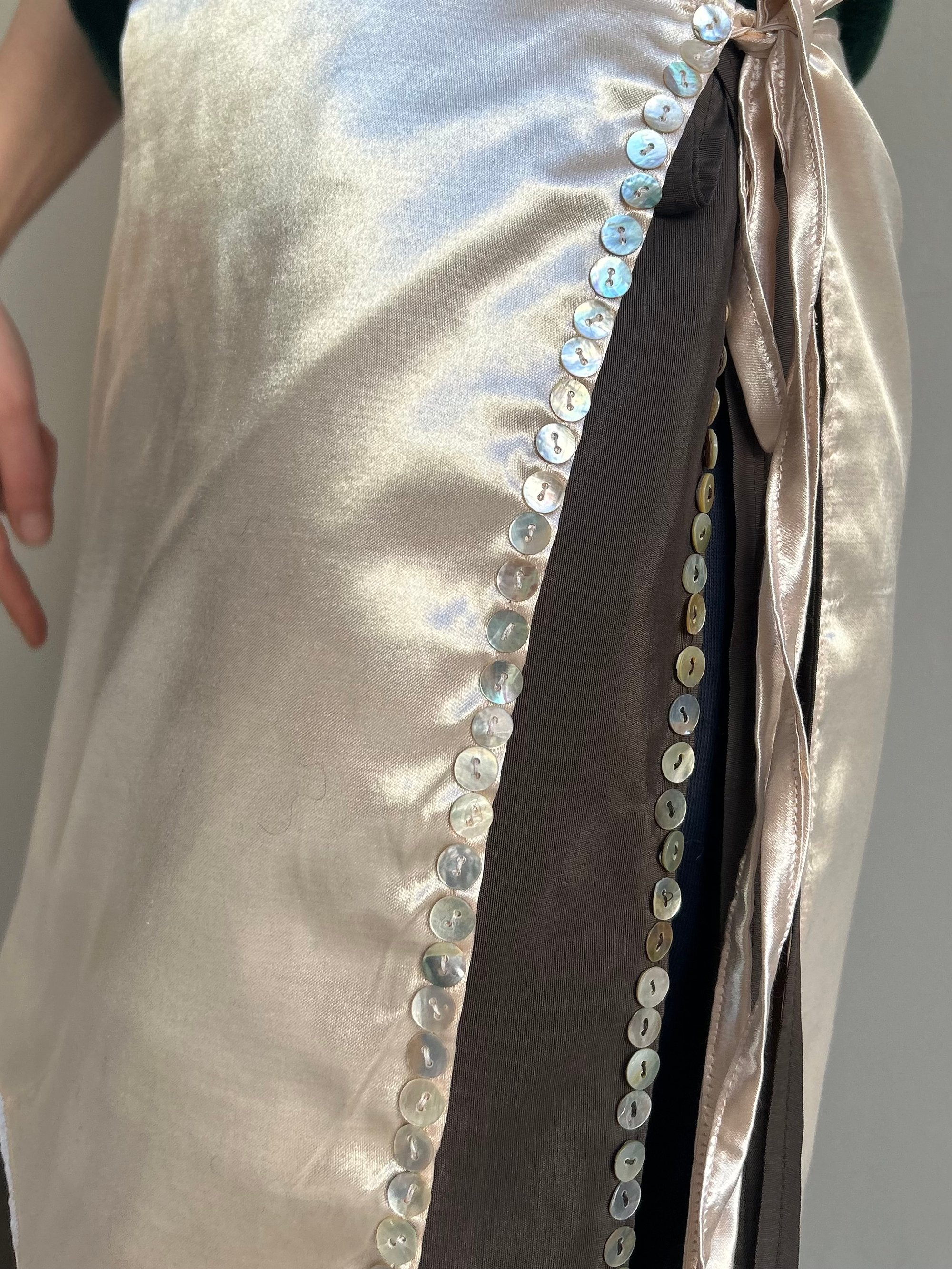 Apron — Pearl Buttons Satin Ballerina Pink