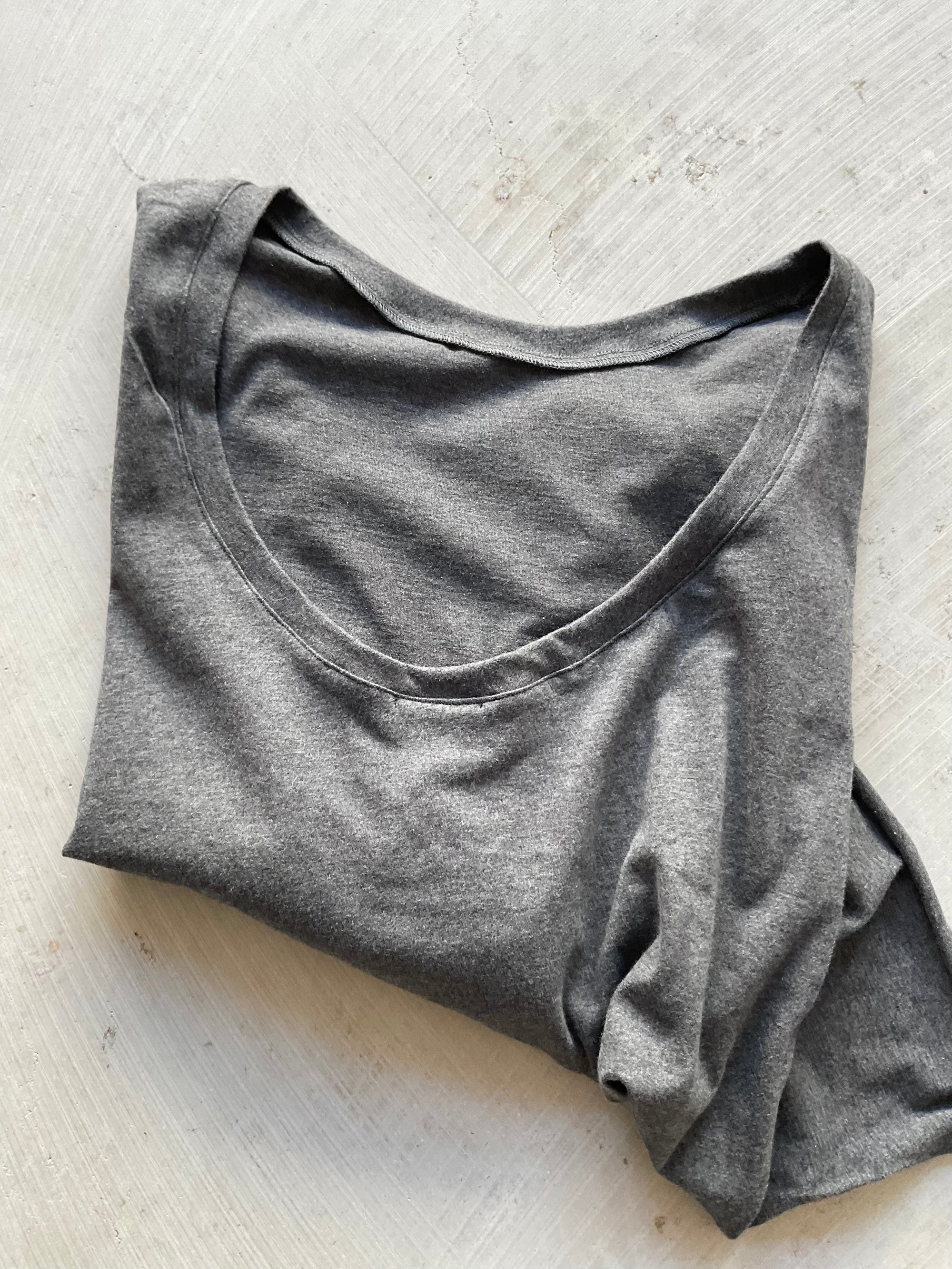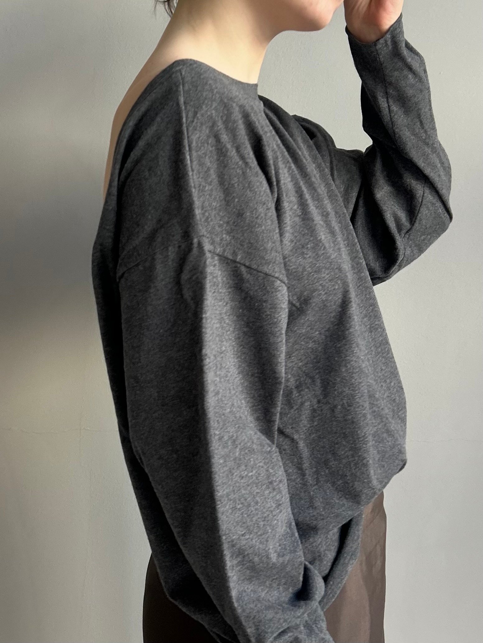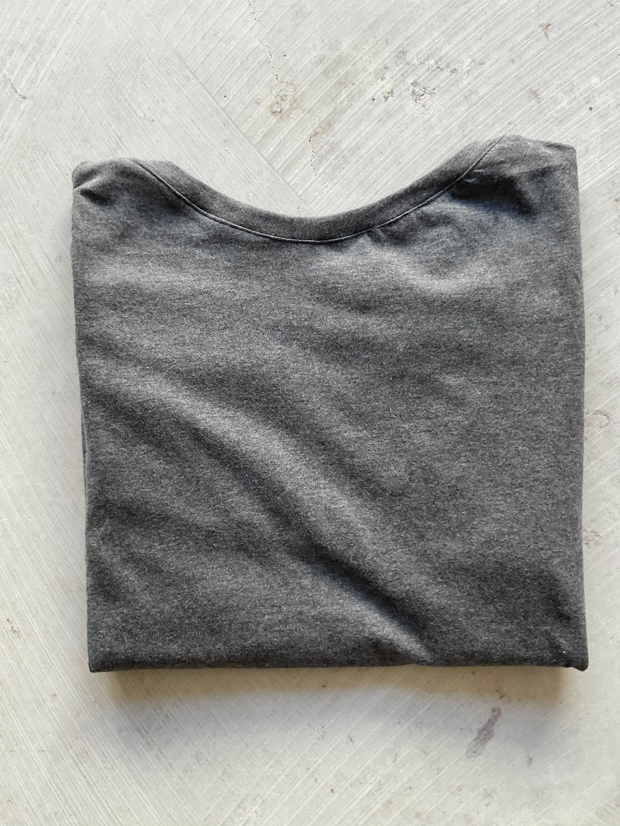 Mit loose Fit, langen Ärmeln und raw Edges. Atmungsaktiv, minimal und solo oder unter Strick tragbar.