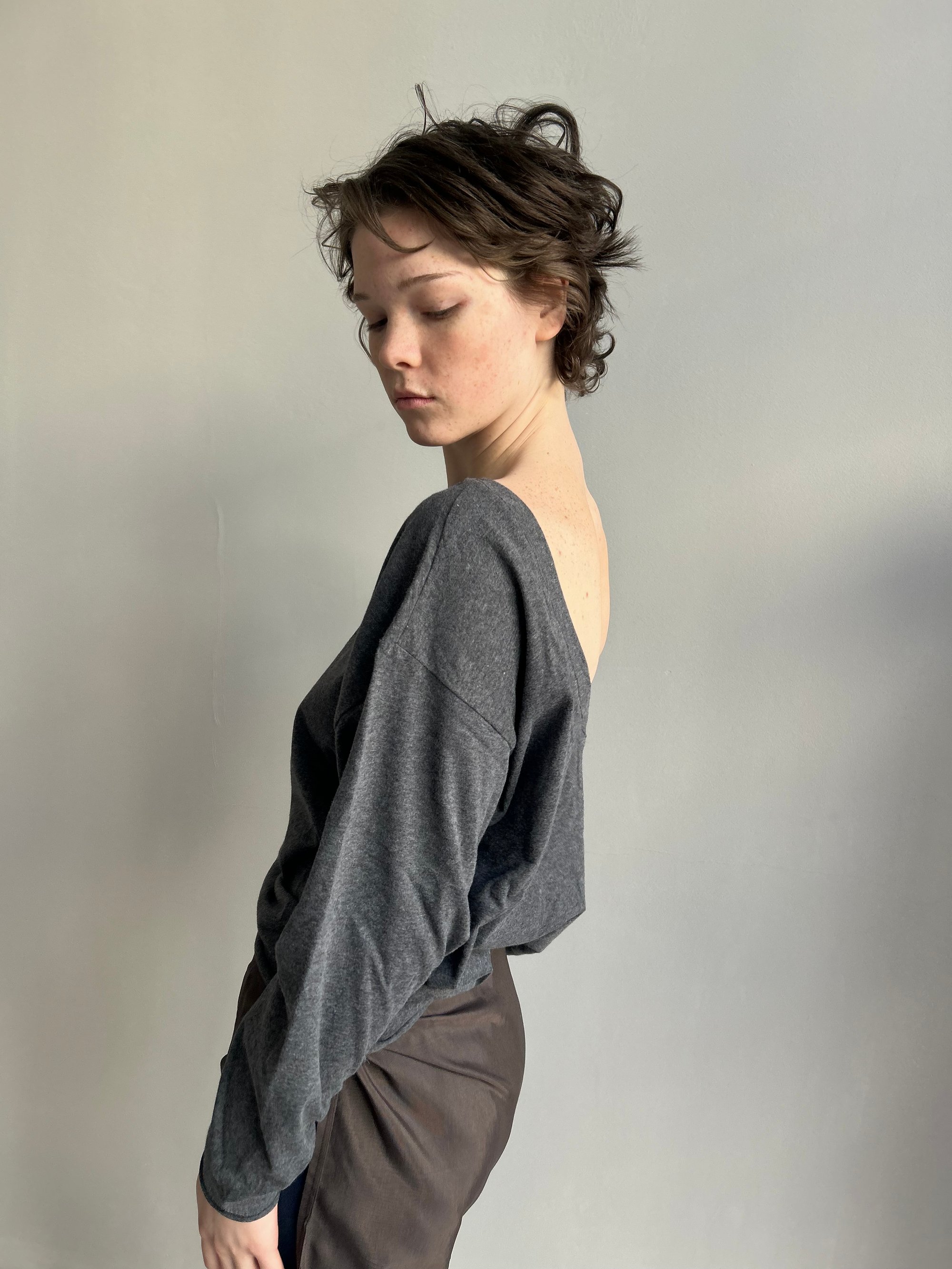 The Bella Top is the lightweight everyday version of our best-selling Bella Sweatshirt — featuring the same open-back line in a soft brushed cotton jersey for spring and summer.