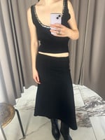 The asymmetrical hem adds a gentle twist, creating a shape that feels both minimal and unexpected. The elastic waistband sits comfortably on the body and adapts to your shape without zippers or closures.