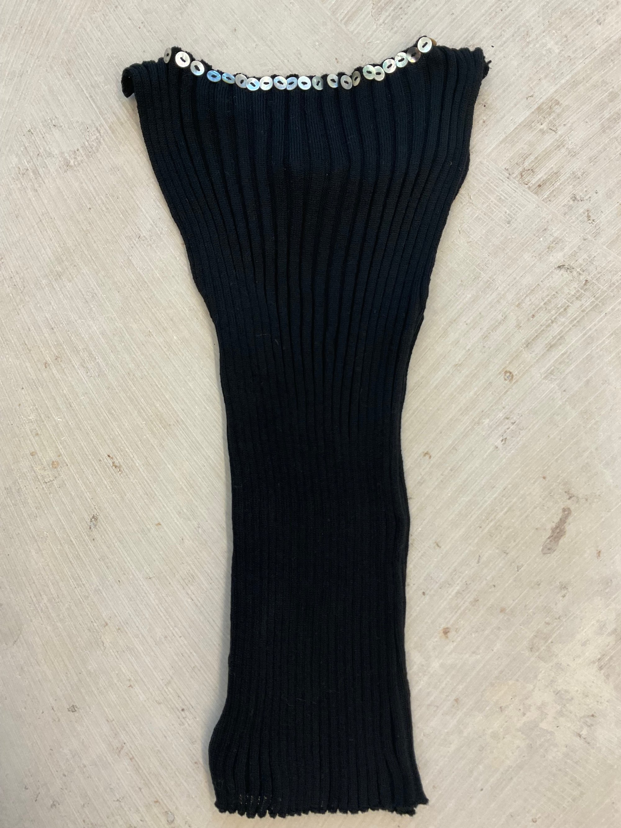 The rib knit follows the body gently, stretching comfortably and creating a clean architectural line whether worn alone or layered.
