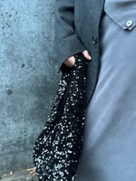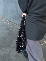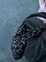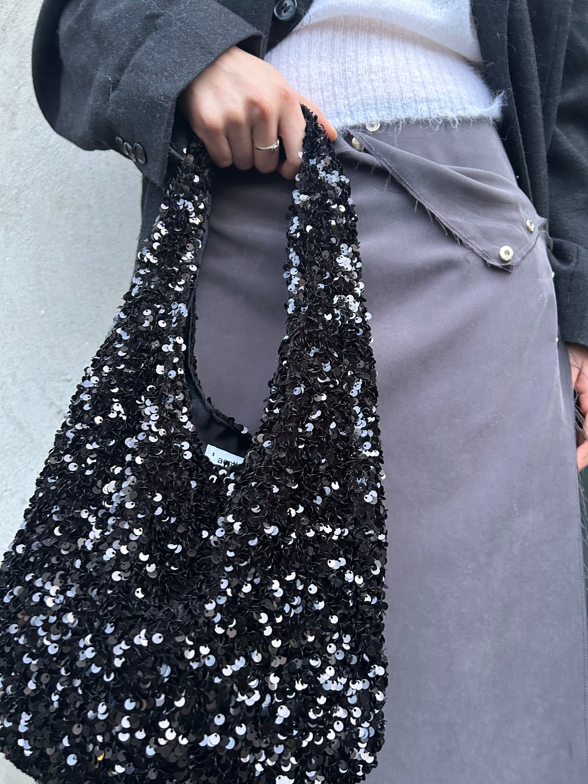 Covered in thousands of shimmering sequins that reflect light like a night sky, this statement shoulder bag adds refined sparkle and a soft, celestial glow to any wardrobe.