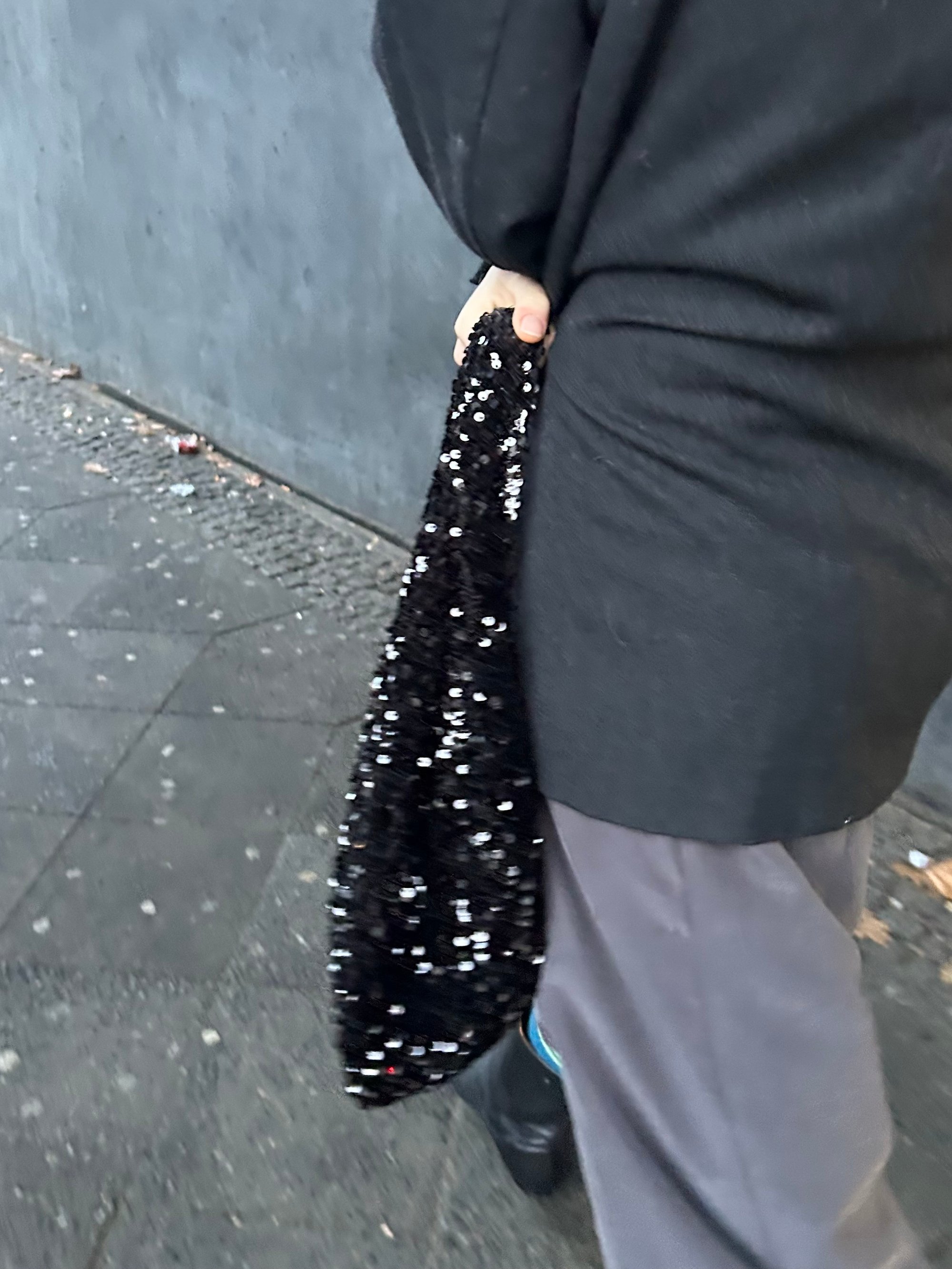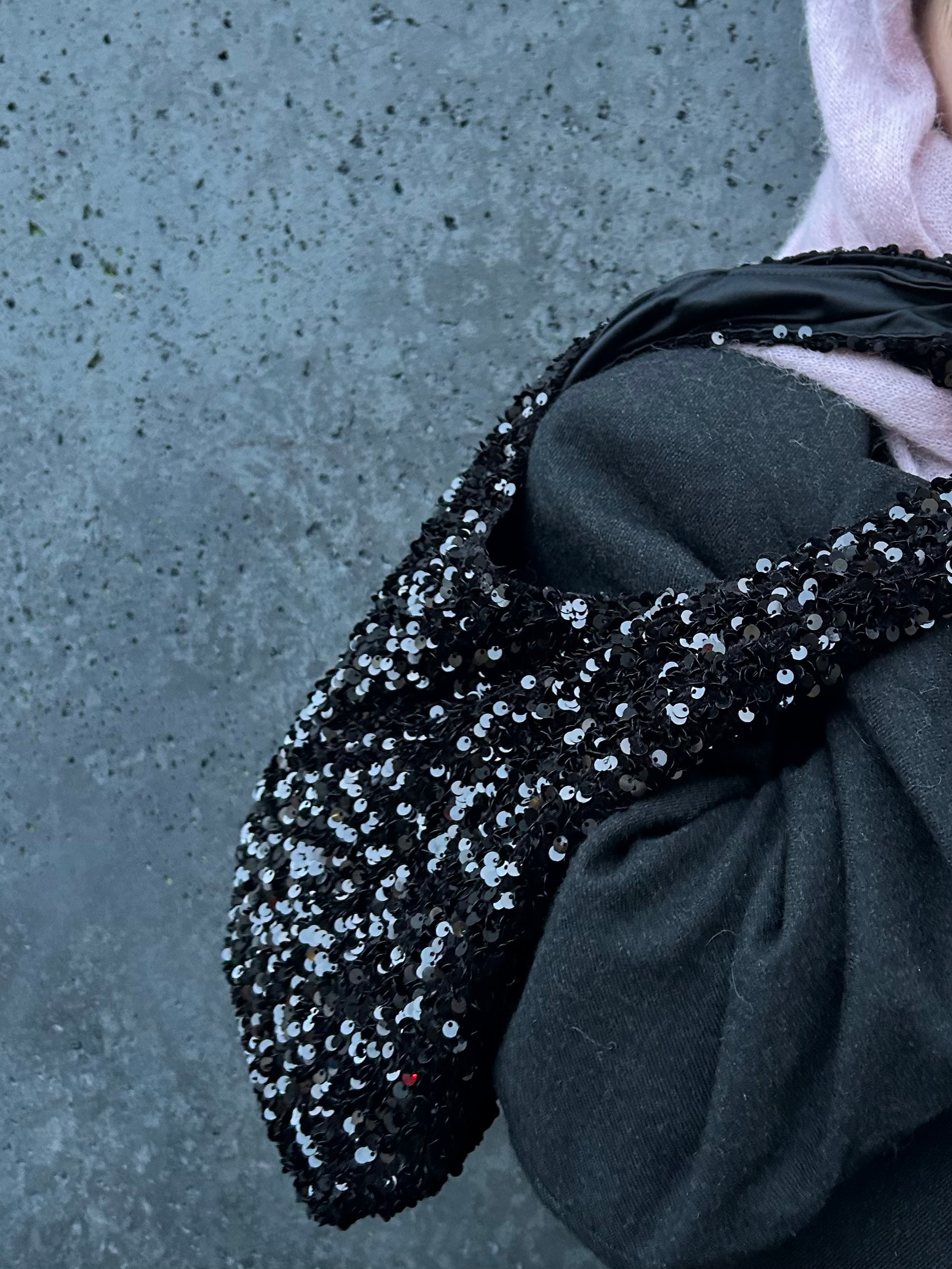 The Moonlight Hobo is a handcrafted sequin hobo bag, created in our Berlin studio to elevate both everyday outfits and evening looks.