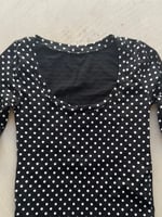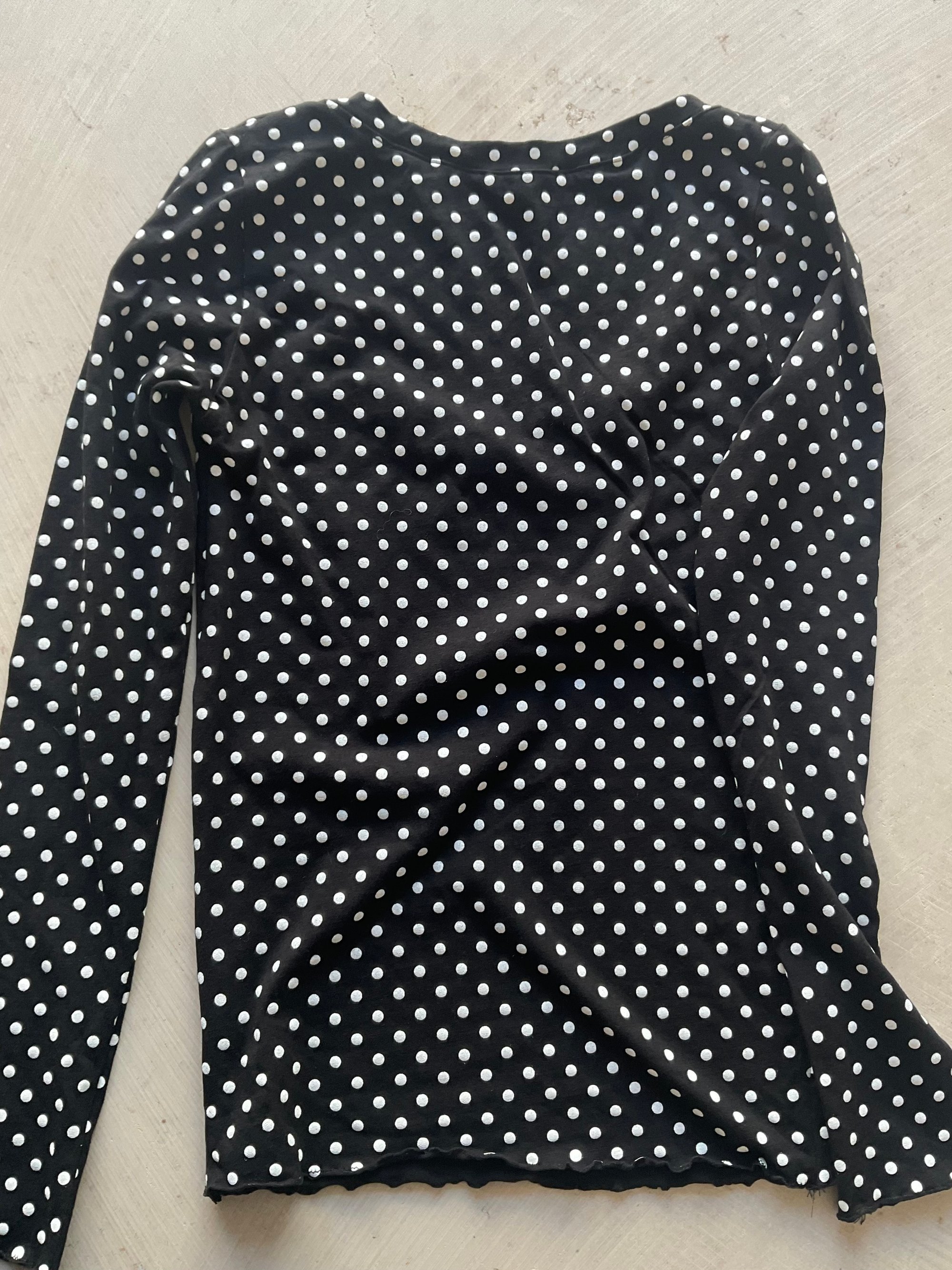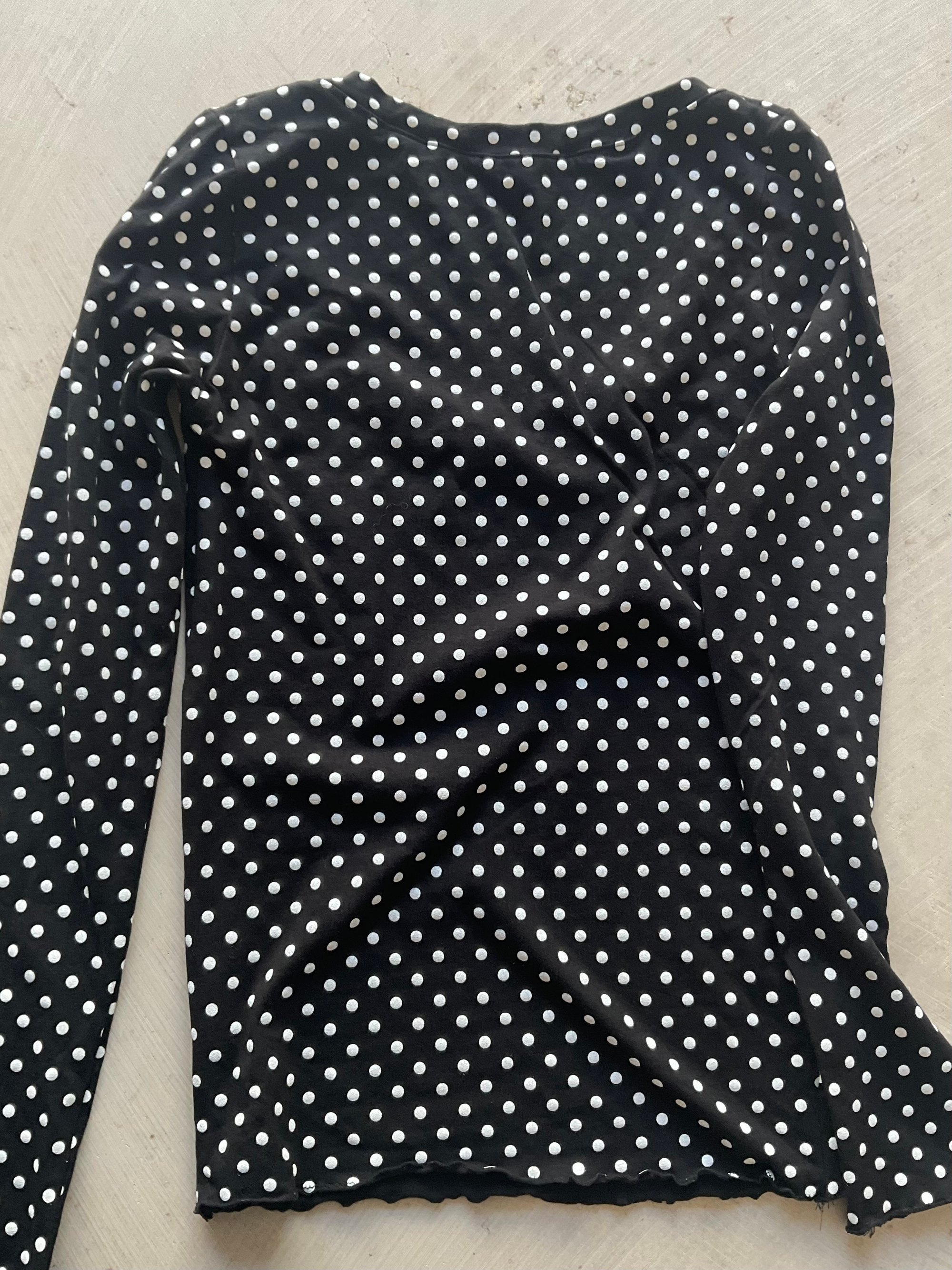 Aus weicher Baumwolle mit Elasthan gefertigt, mit extra langen Ärmeln und feinem Lettuce-Saum. Ein cleaner Everyday-Layer mit skulpturalem Twist — solo oder unter Strick tragbar.