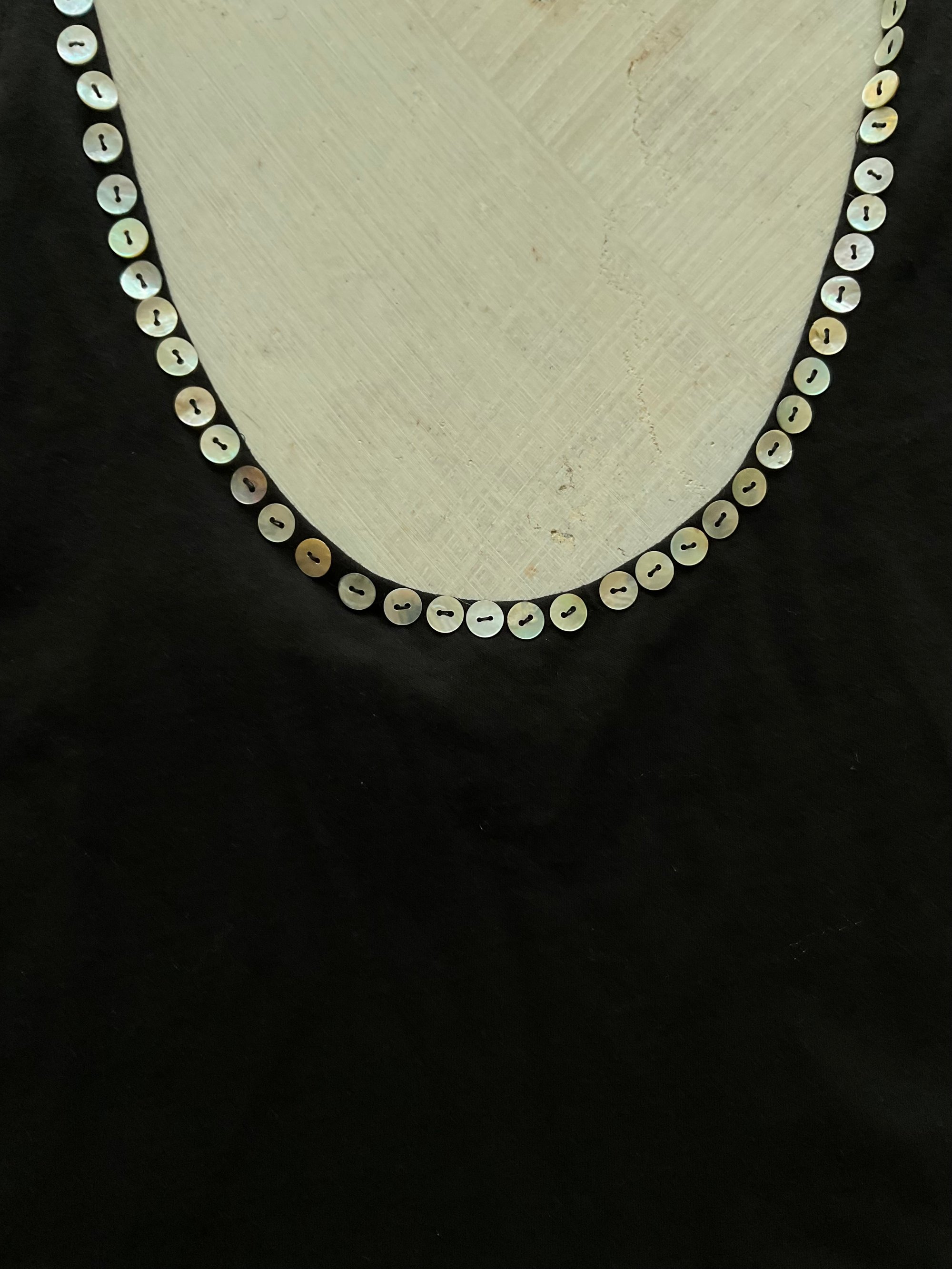 • Mother-of-pearl buttons at the front neckline