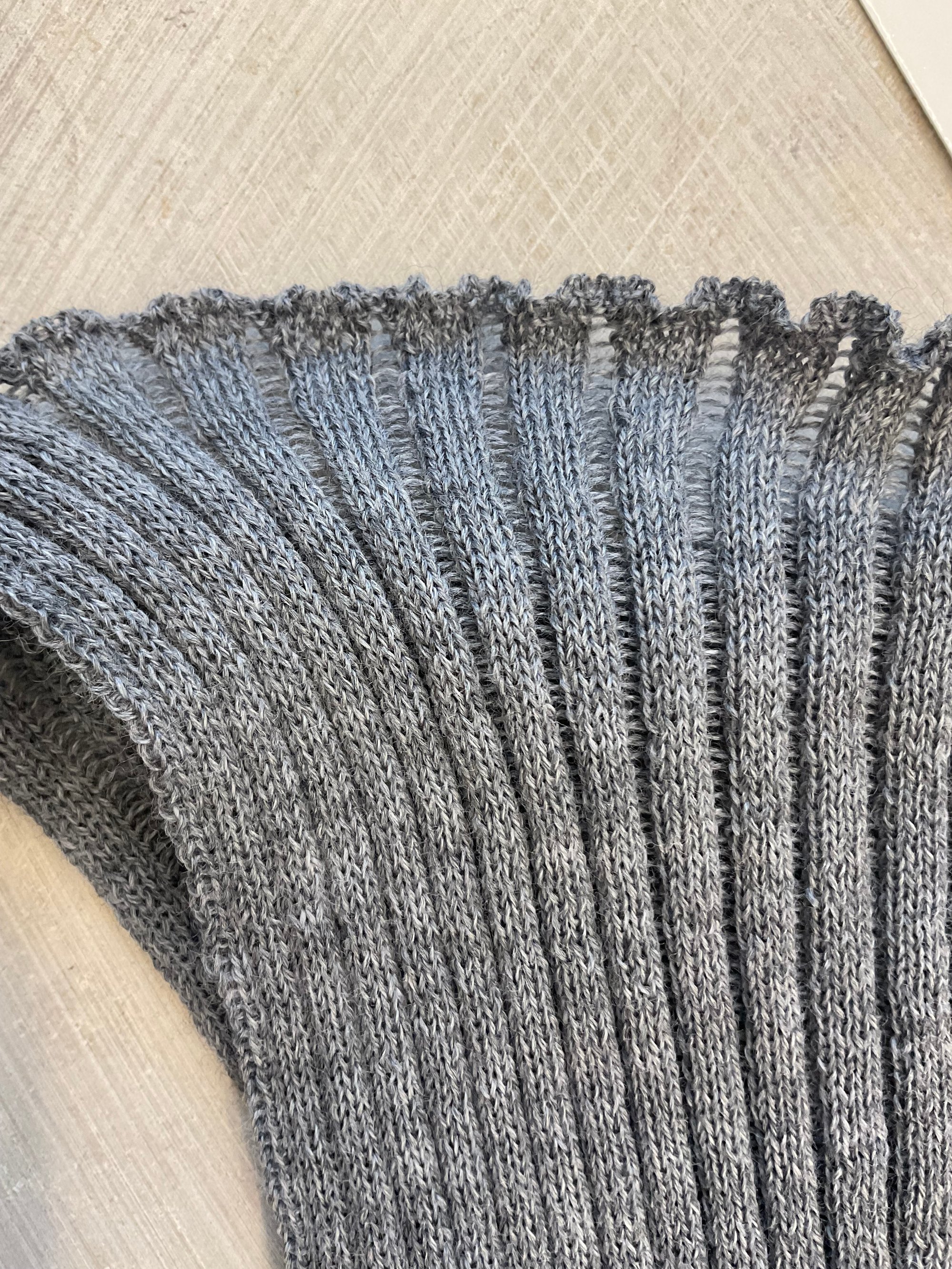 The rib texture is subtly open, with delicate eyelet-like spacing between ribs — creating a light, tactile surface and a refined transparency depending on how the light hits it.