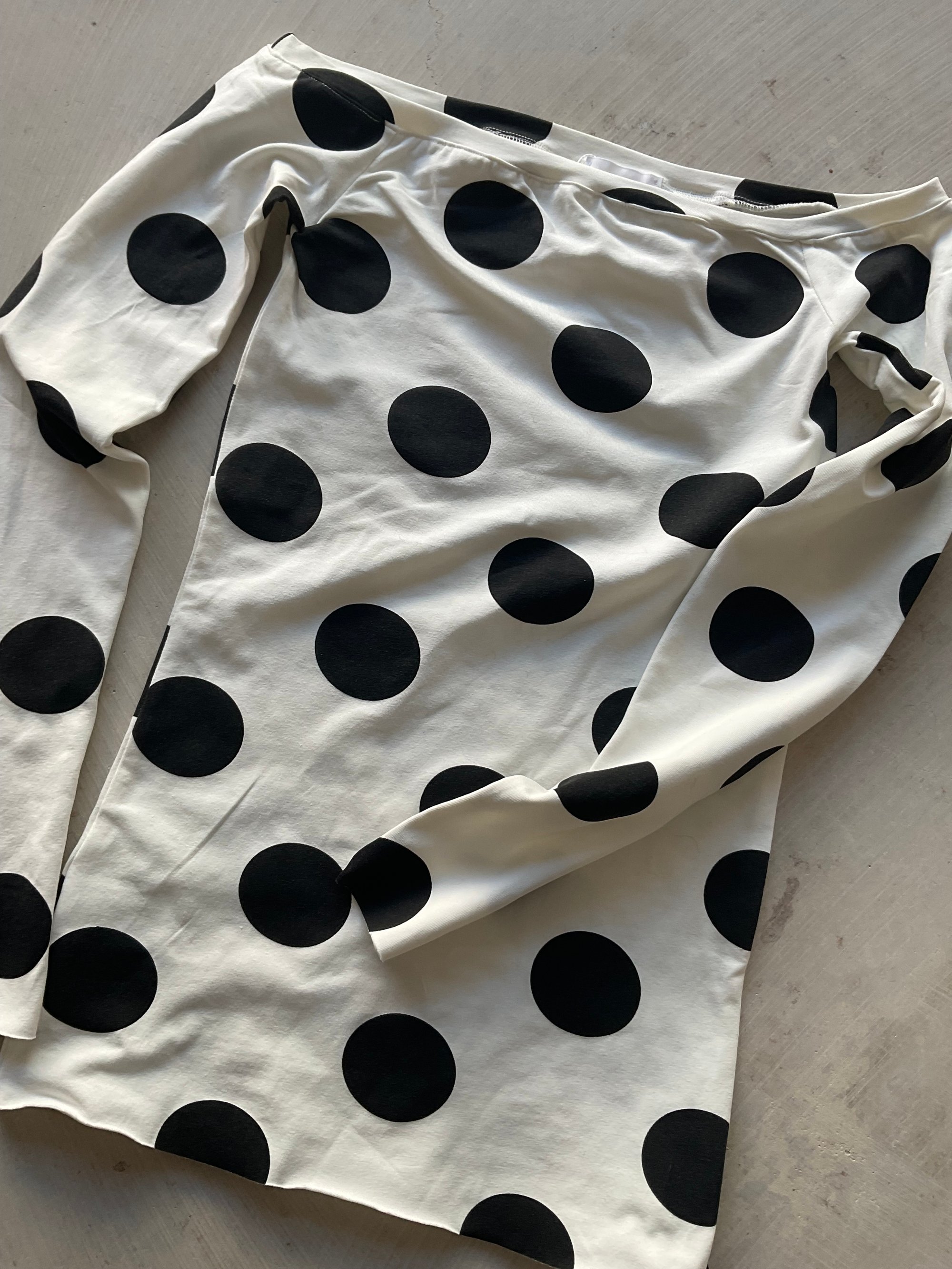 A fitted long-sleeve top crafted from structured cotton jersey in a classic black and white dot print. Graphic yet restrained, it adds clarity to everyday silhouettes.